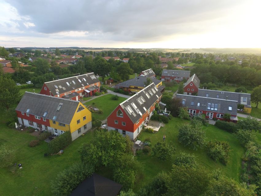 Det omfatter 2,5 hektar med 25 boliger, som huser ca. 70 personer. De 25 private boliger er fordelt på to gårde og en gade med et fælleshus i midten.