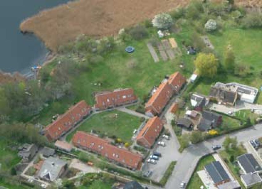 Vi har 12 huse med i alt 24 voksne og 10 børn/unge, der bor i et naturskønt og børnevenligt område direkte ned til det gamle Susåløb.