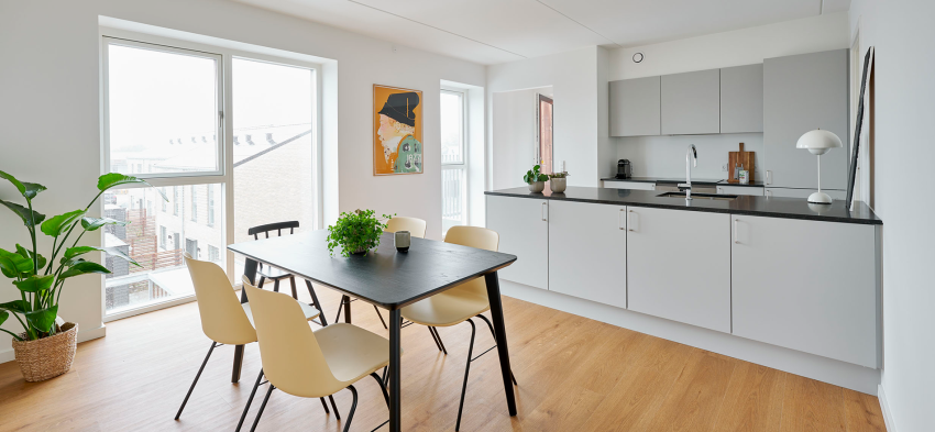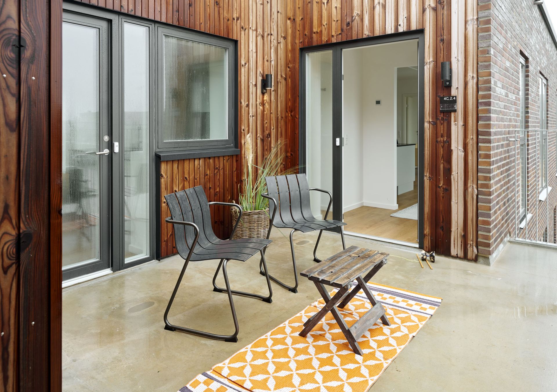 Inklusiv i huslejen er også adgang til attraktive fællesfaciliteter med stort fælleshus, grønne uderum og arrangementer, som understøttes af fast tilknyttet vært - læs mere herom nedenfor.