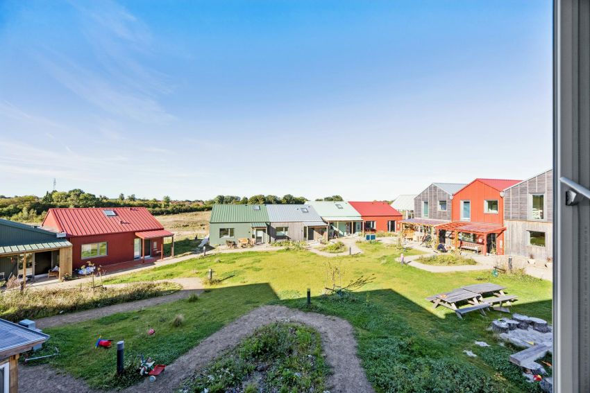 Fællesskabet ligger kun få minutters gang til Hvalsø station, skole, daginstitutioner og indkøb – og blot 35 minutter i bil til København.