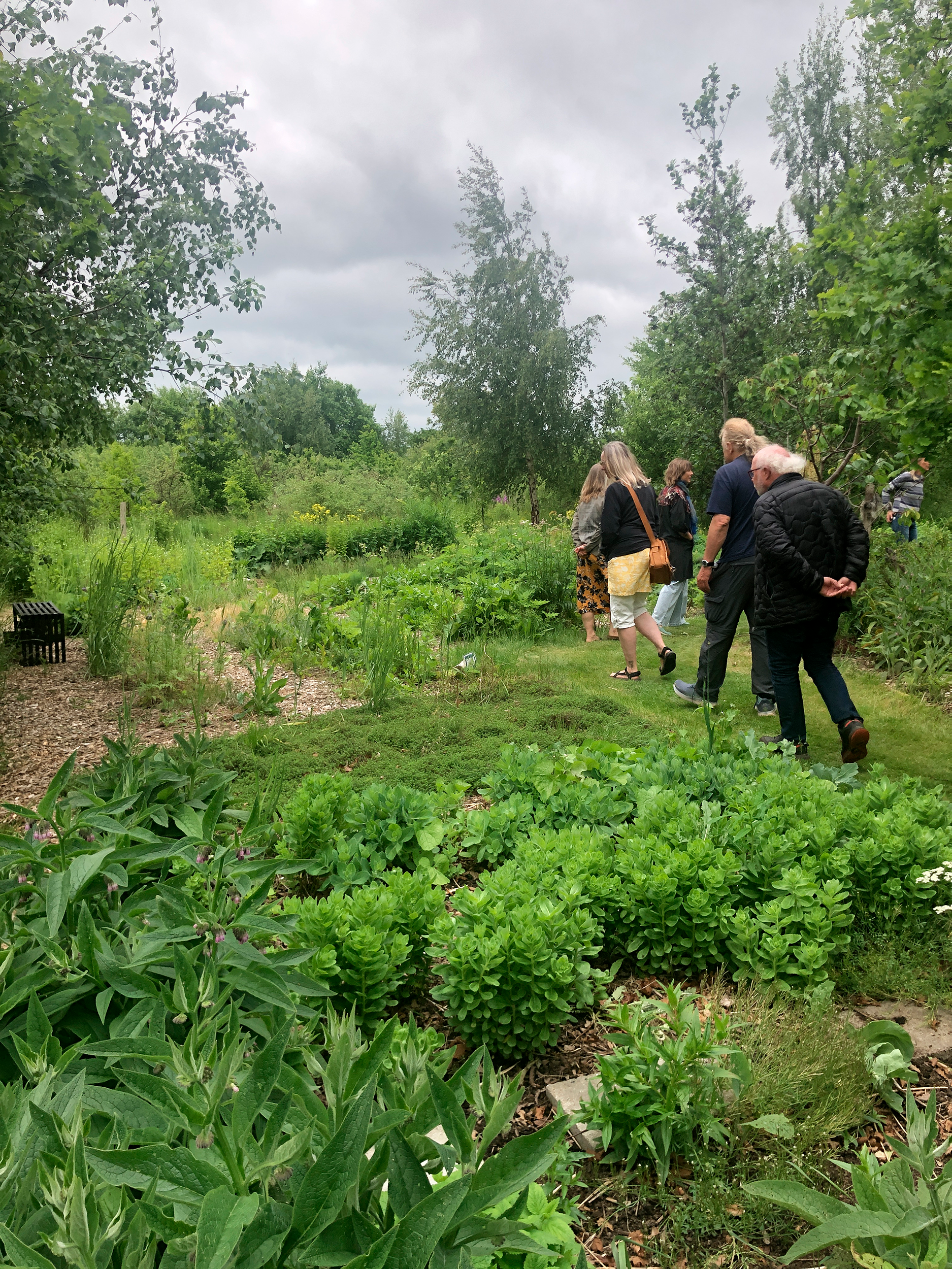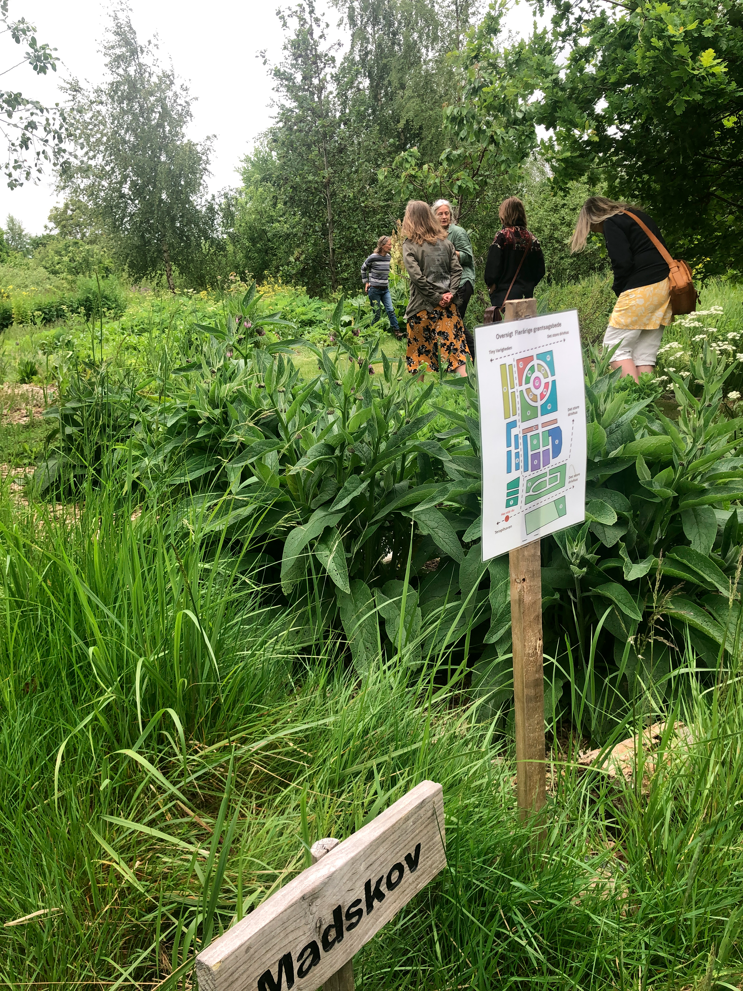 Der var cirka femogtyve deltagere, hvilket var et pænt stort antal. Marianne tog imod ved indkørslen til Køge Fælles Jord, som stedet overordnet hedder, og gik herefter i gang med at fortælle om oprindelsen af ideen og hvor projektet står i dag.