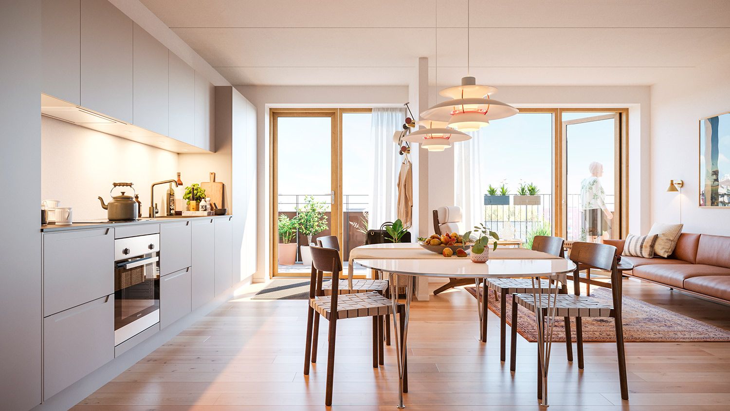 Virke-fællesskaberne består veldesignede og kompakte byboliger, hvor man deles om et lækkert alrum med fælleskøkken, terrasse, et drivhus med plads til at dyrke grønt og urter og et værksted for håndværk og kreativt arbejde.